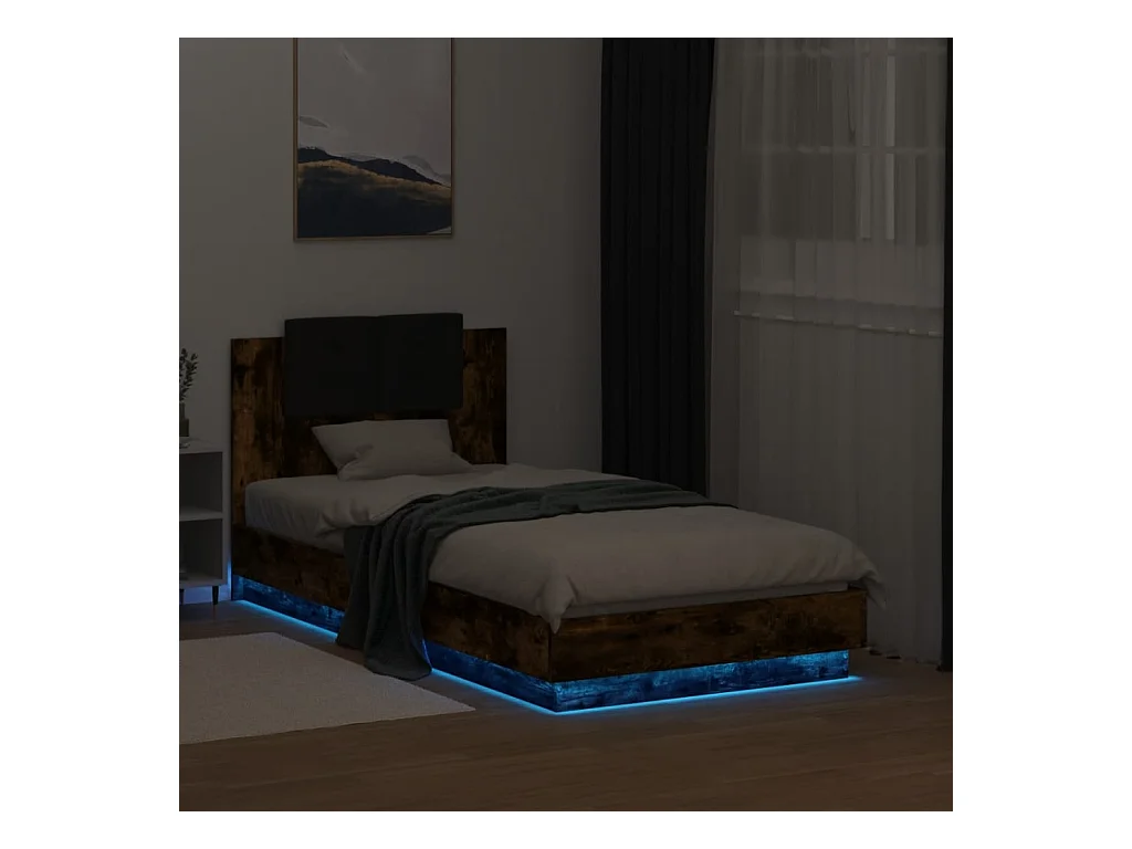 Lit simple | Lit adulte, enfant | Cadre de lit avec LED chêne fumé 75x190 cm