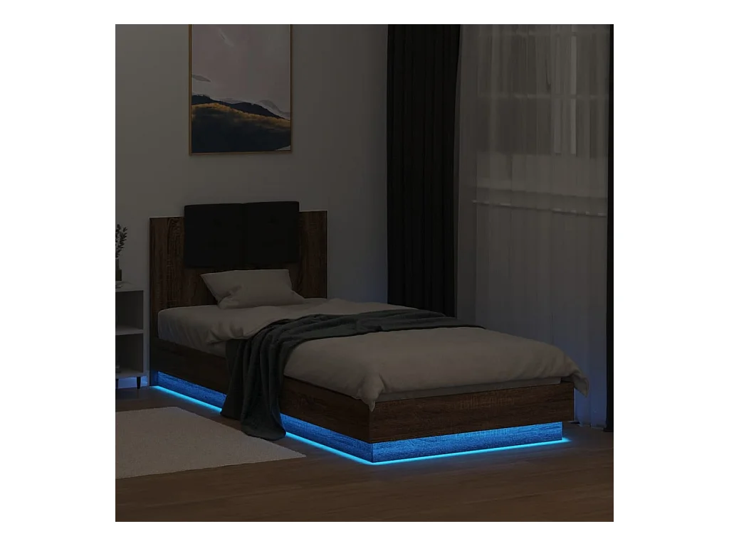 Lit simple | Lit adulte, enfant | Cadre de lit avec LED chêne marron 90x200 cm