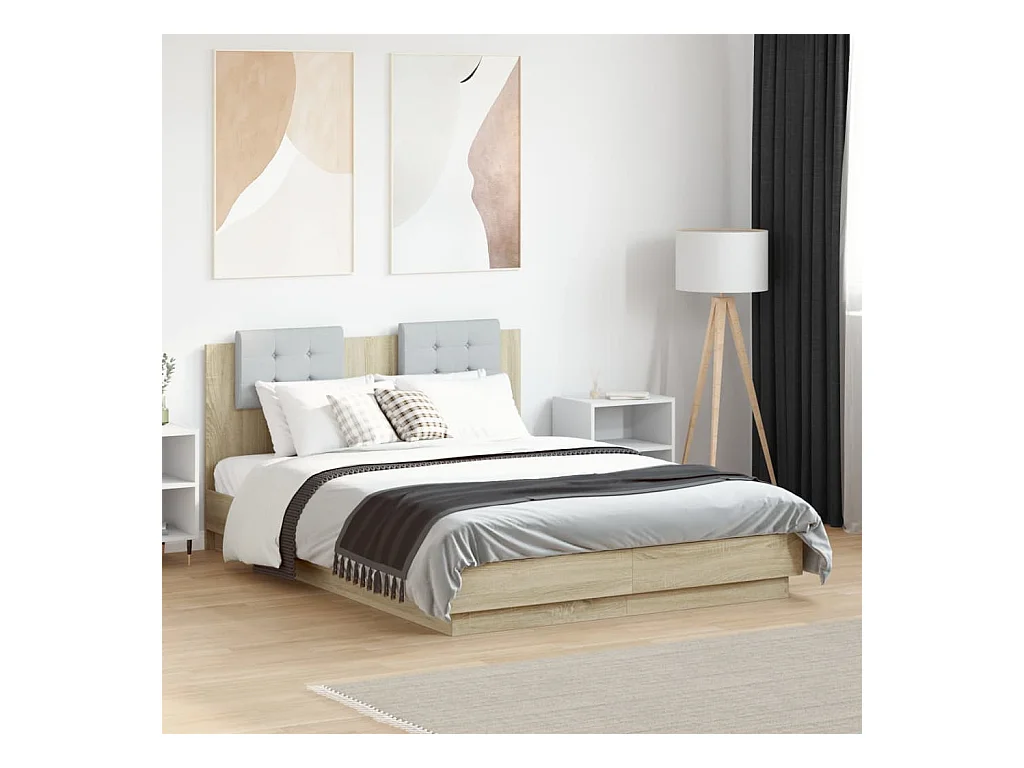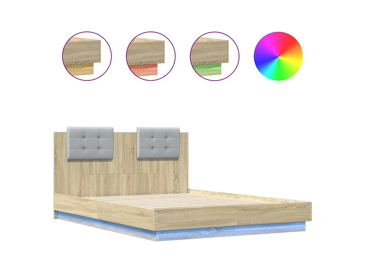 Lit simple | Lit adulte, enfant | Cadre de lit avec LED chêne sonoma 120x190 cm