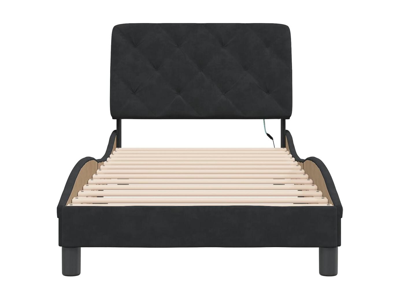 Lit simple | Lit adulte, enfant | Cadre de lit avec LED noir 80x200 cm velours