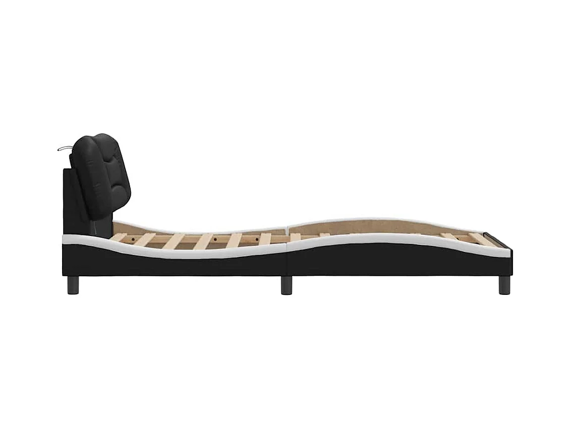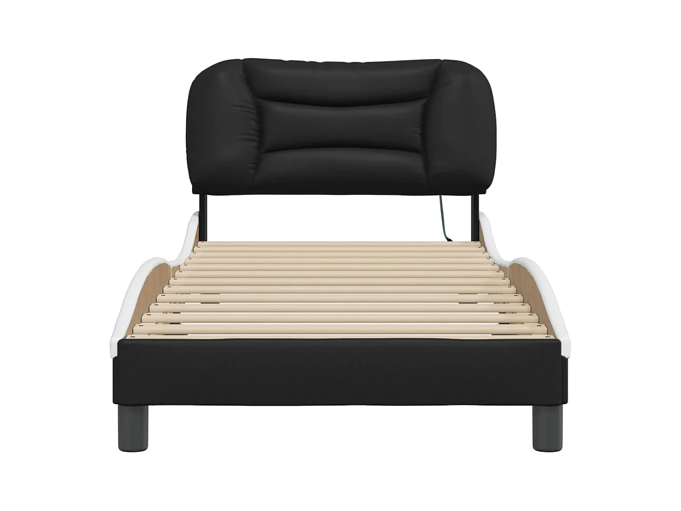 Lit simple | Lit adulte, enfant | Cadre de lit avec LED noir et blanc 90x190 cm