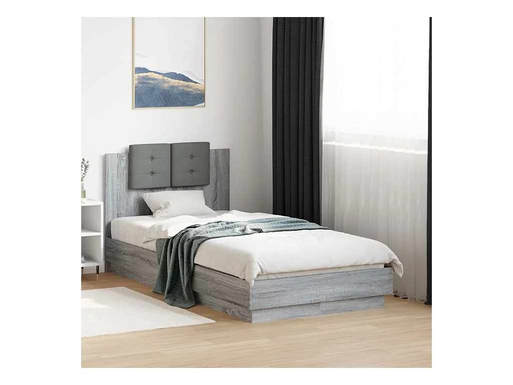 Lit simple | Lit adulte, enfant | Cadre de lit avec LED sonoma gris 75x190 cm