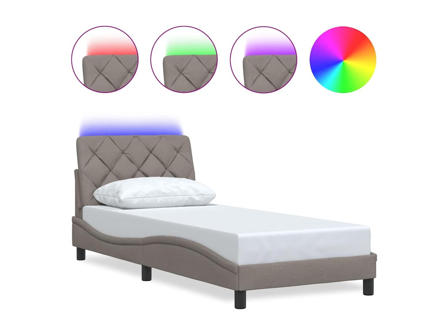 Lit simple | Lit adulte, enfant | Cadre de lit avec LED taupe 90x200 cm tissu