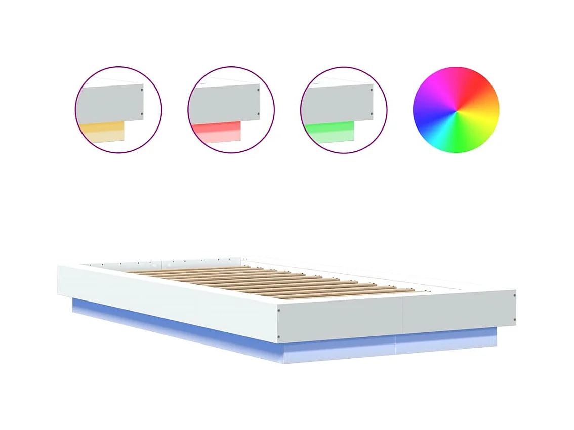Lit simple | Lit adulte, enfant | Cadre de lit avec lumières LED blanc 90x200 cm