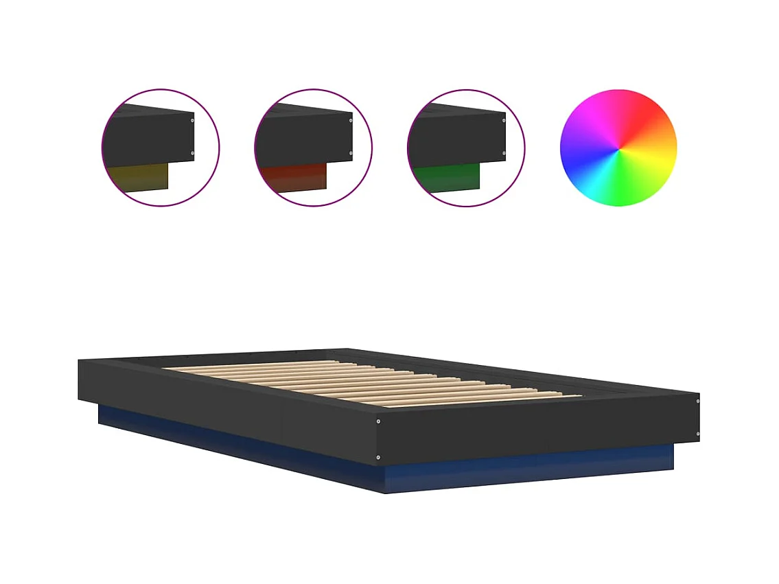 Lit simple | Lit adulte, enfant | Cadre de lit avec lumières LED noir 100x200 cm