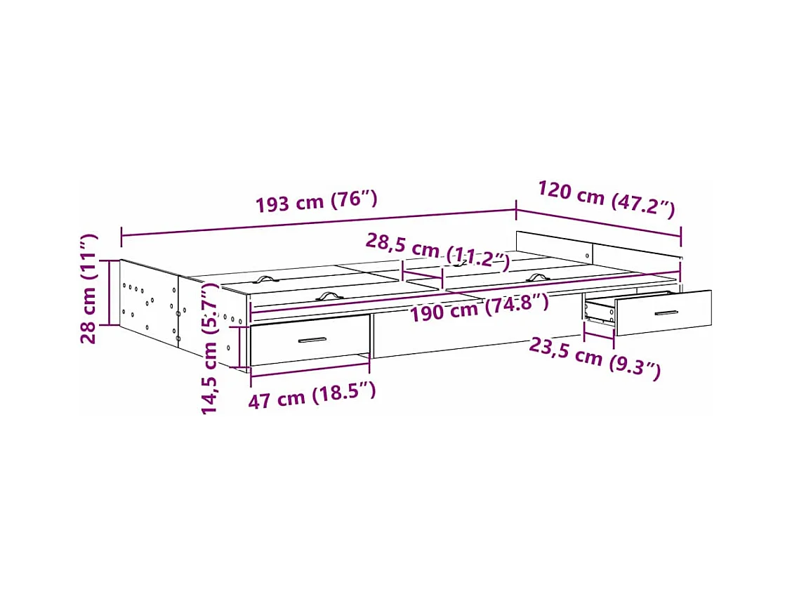 Lit simple | Lit adulte, enfant | Cadre de lit avec rangement avec tête de lit Blanc 120x190 cm