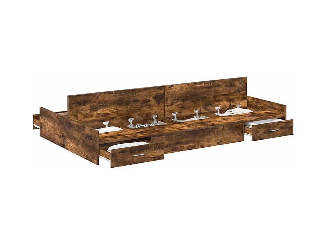 Lit simple | Lit adulte, enfant | Cadre de lit avec rangement avec tiroir Chêne fumé 120x190 cm