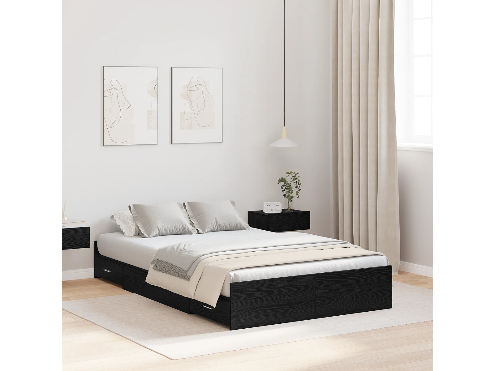 Lit simple | Lit adulte, enfant | Cadre de lit avec rangement avec tiroir Chêne noir 120x190 cm