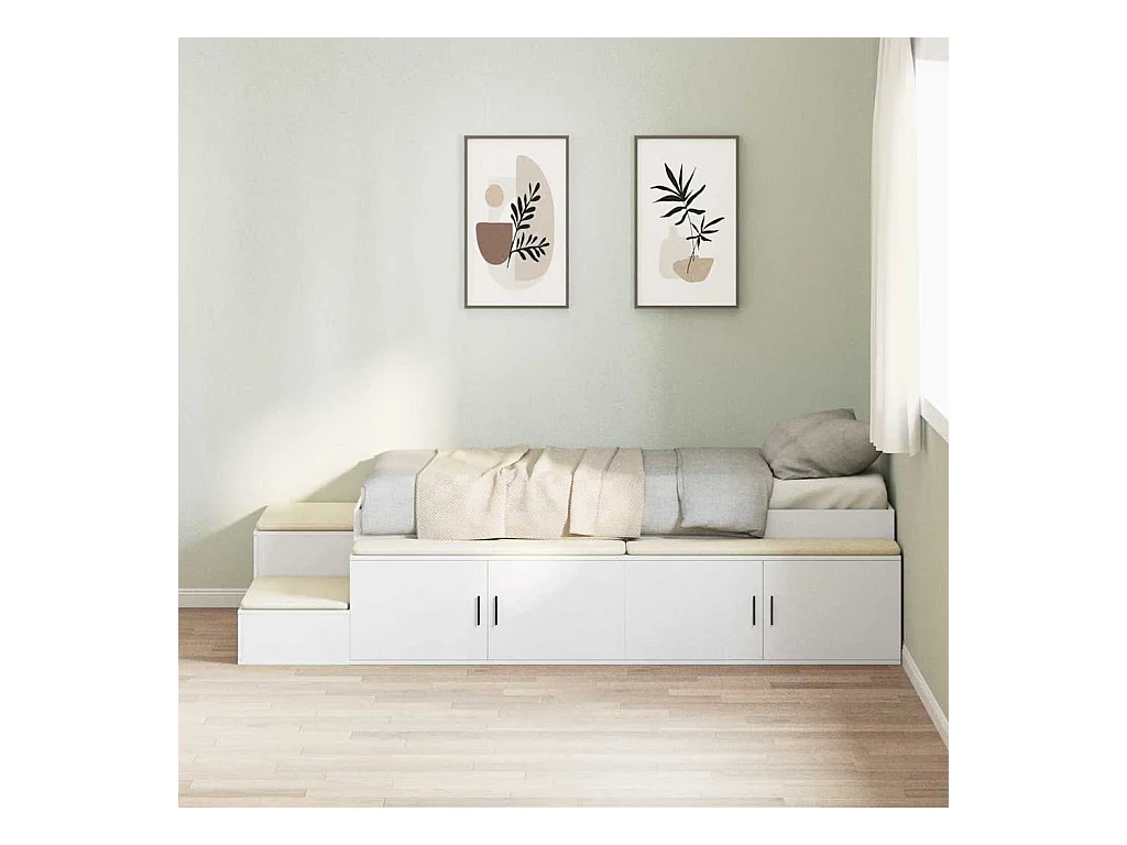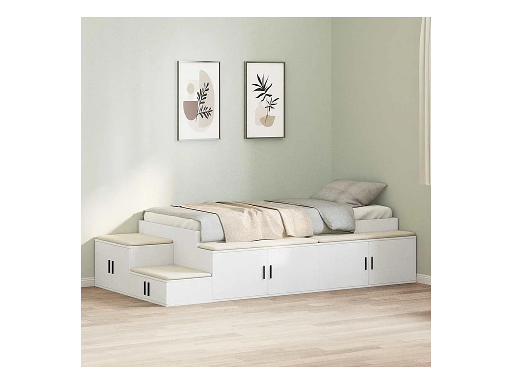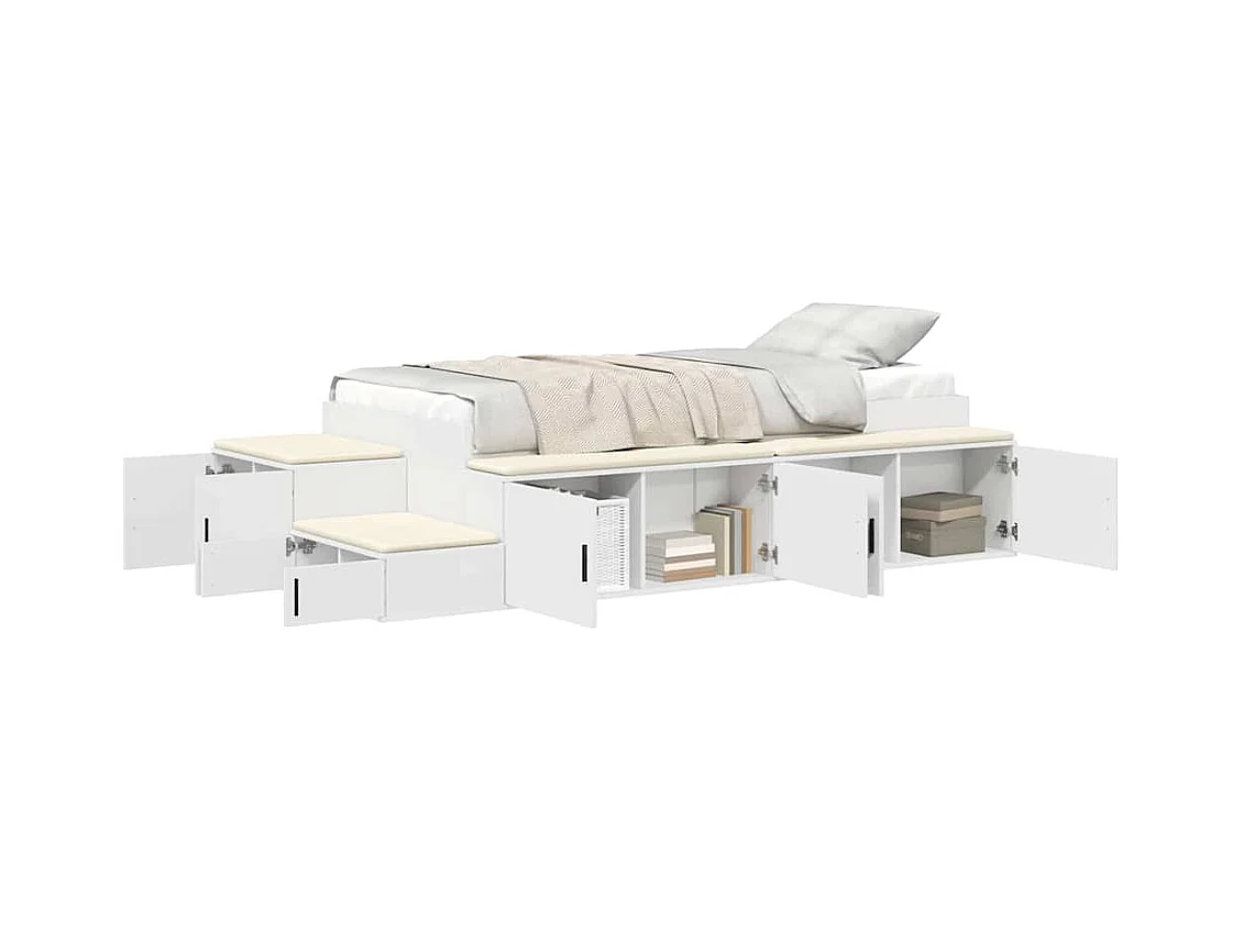 Lit simple | Lit adulte, enfant | Cadre de lit avec rangement Blanc 234x118x53.5 cm