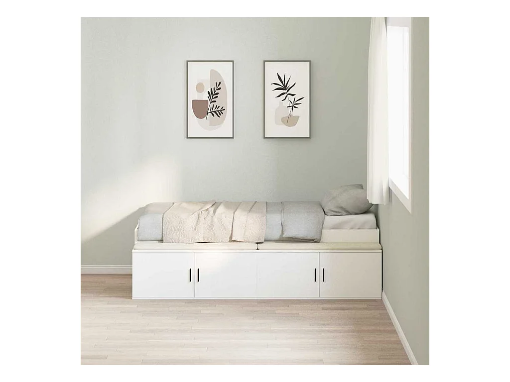 Lit simple | Lit adulte, enfant | Cadre de lit avec rangement Blanc 75x190 cm Bois d'ingénierie