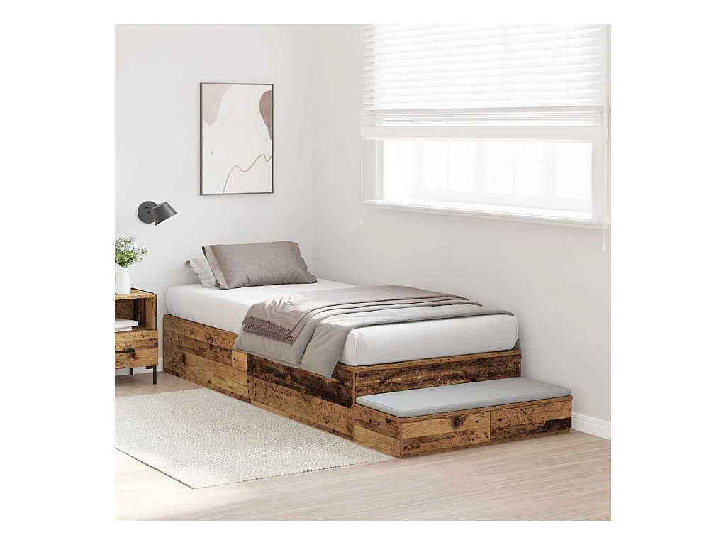 Lit simple | Lit adulte, enfant | Cadre de lit avec rangement Bois ancien 236.5x80x31.5 cm