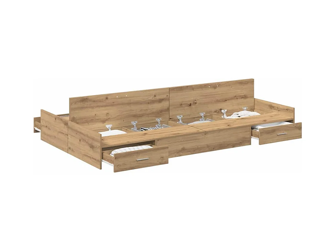 Lit simple | Lit adulte, enfant | Cadre de lit avec rangement chêne artisanal 120x200 cm