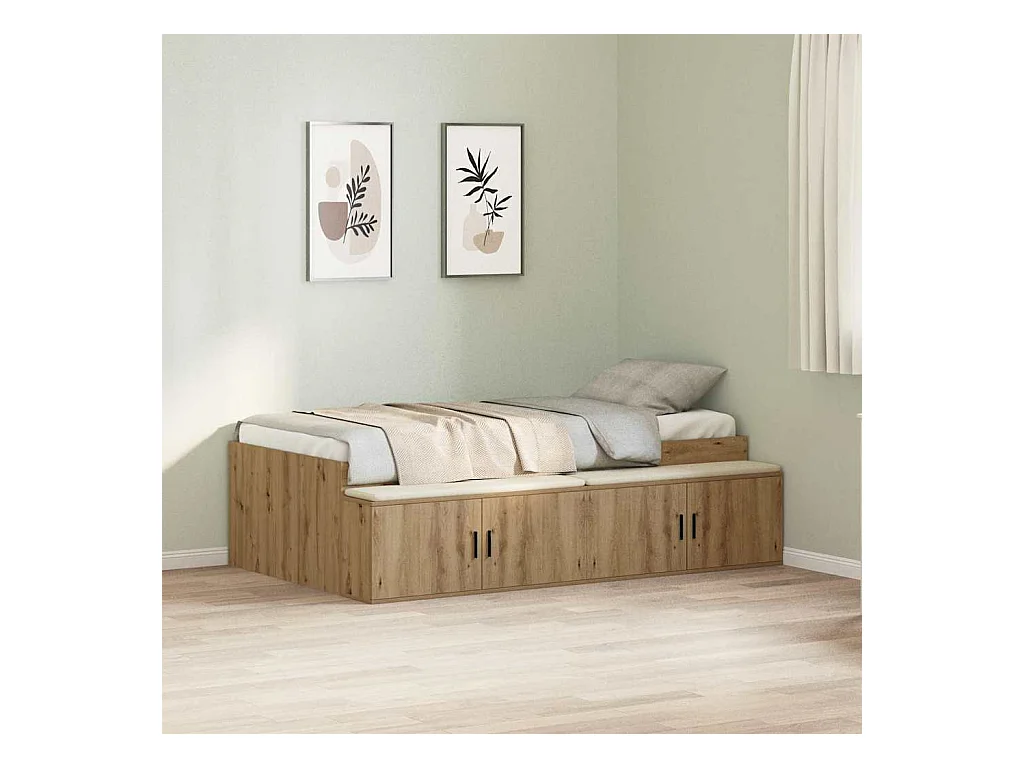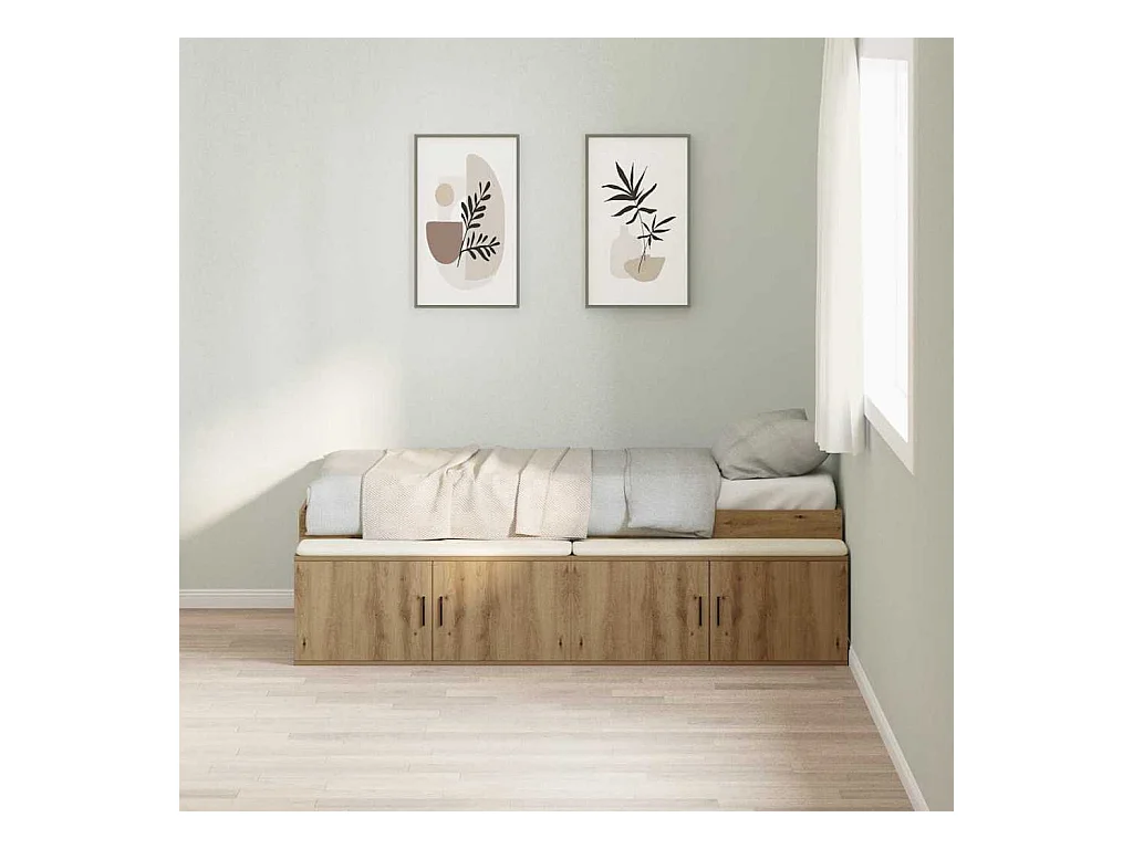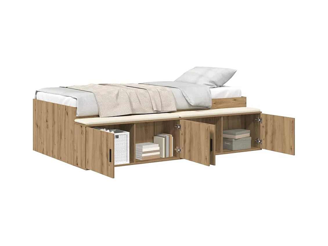 Lit simple | Lit adulte, enfant | Cadre de lit avec rangement chêne artisanal 80x200 cm
