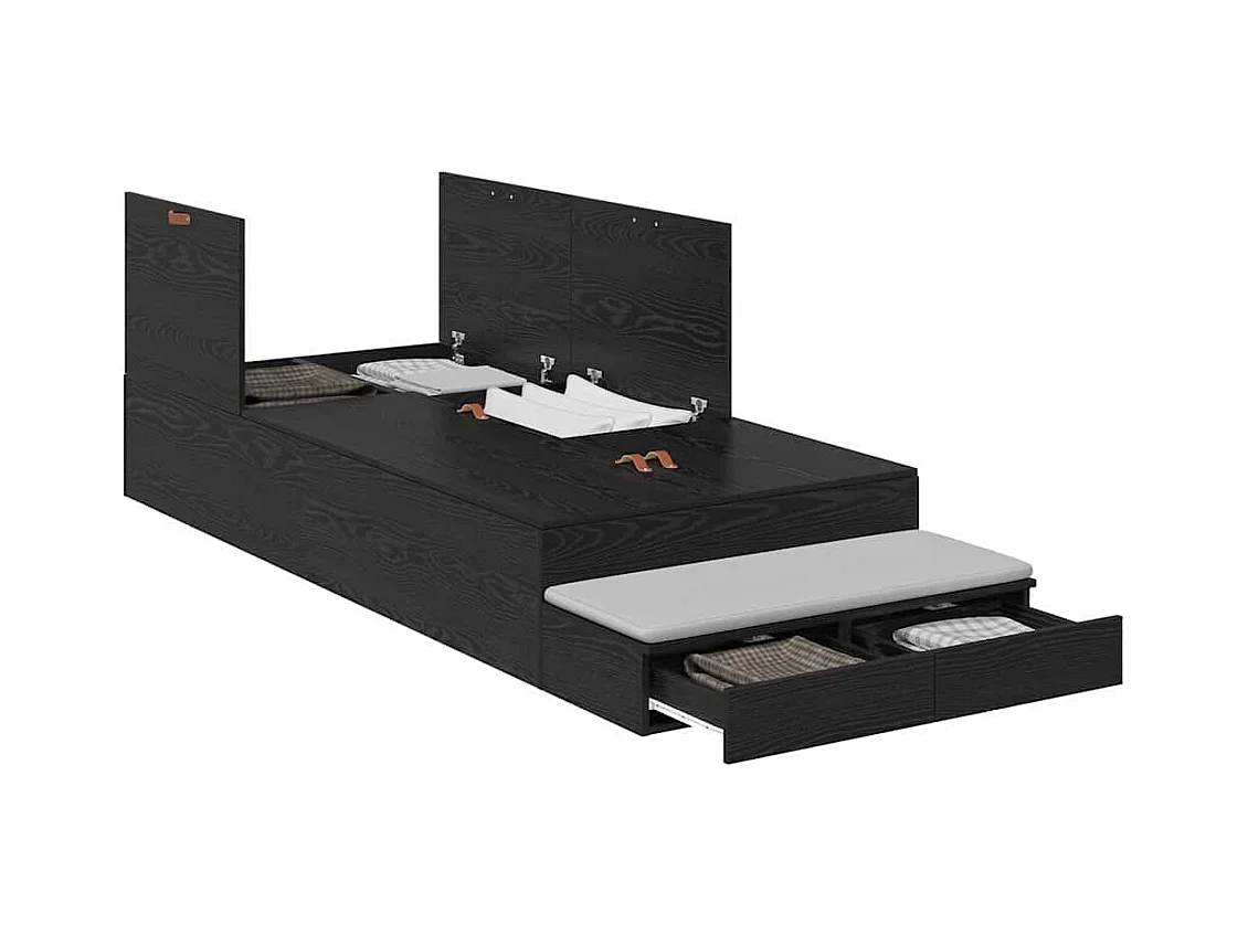 Lit simple | Lit adulte, enfant | Cadre de lit avec rangement Chêne noir 226.5x90x31.5 cm