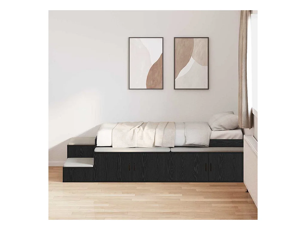 Lit simple | Lit adulte, enfant | Cadre de lit avec rangement Chêne noir 234x118x53.5 cm