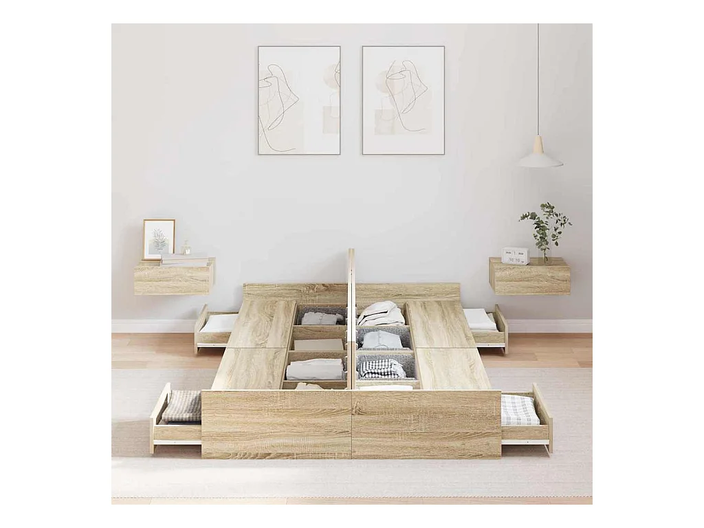 Lit simple | Lit adulte, enfant | Cadre de lit avec rangement Chêne sonoma 120x200 cm