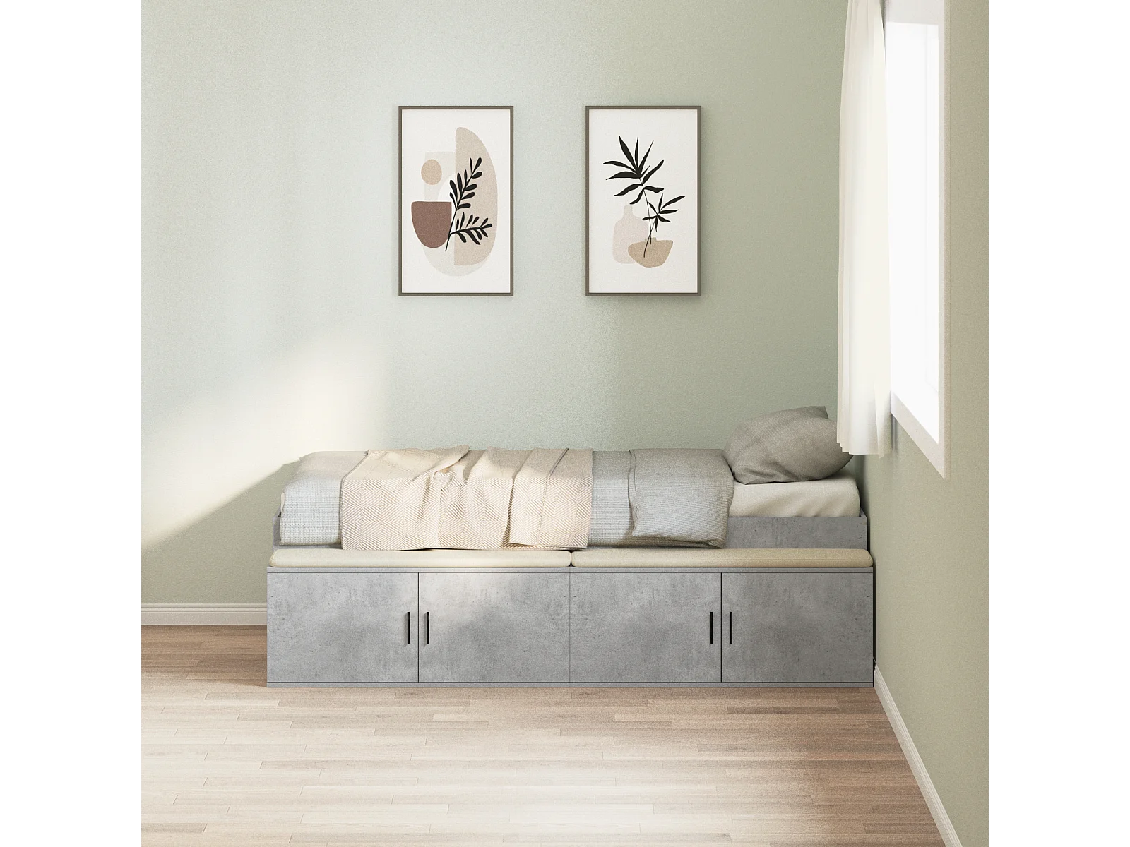 Lit simple | Lit adulte, enfant | Cadre de lit avec rangement Gris béton 90x200 cm