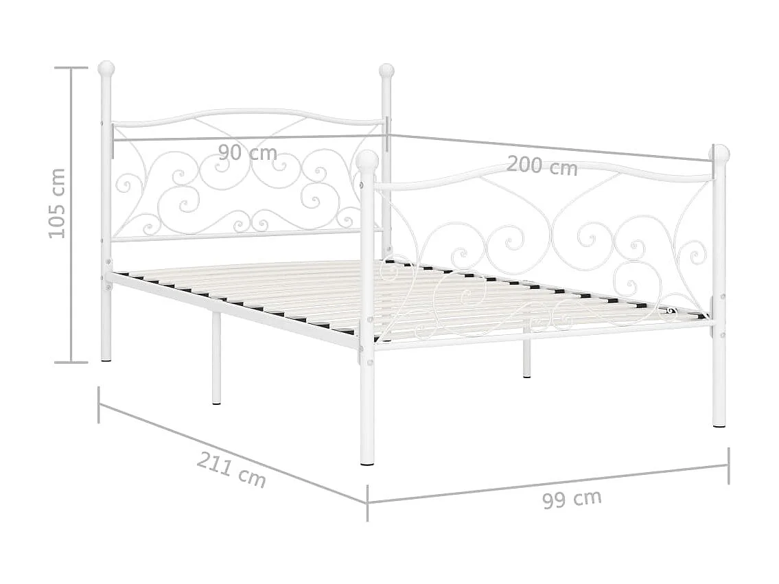 Lit simple | Lit adulte, enfant | Cadre de lit blanc métal 90x200 cm