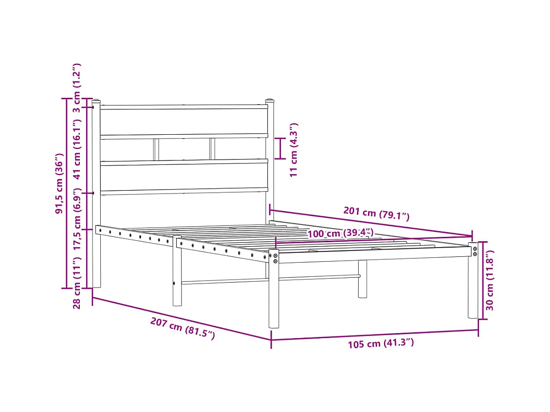 Cadre de lit en métal sans matelas chêne fumé 100x200 cm