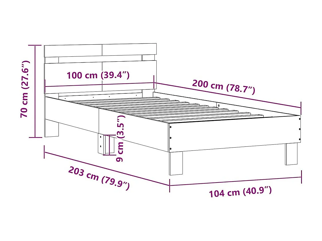 Lit simple | Lit adulte, enfant | Cadre de lit avec tête de lit 100x200 cm