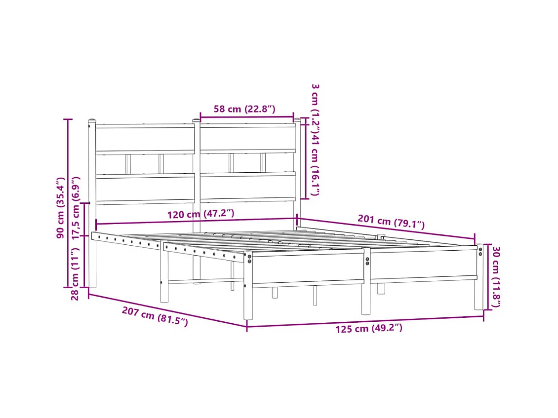 Cadre de lit sans matelas chêne fumé 120x200 cm bois ingénierie