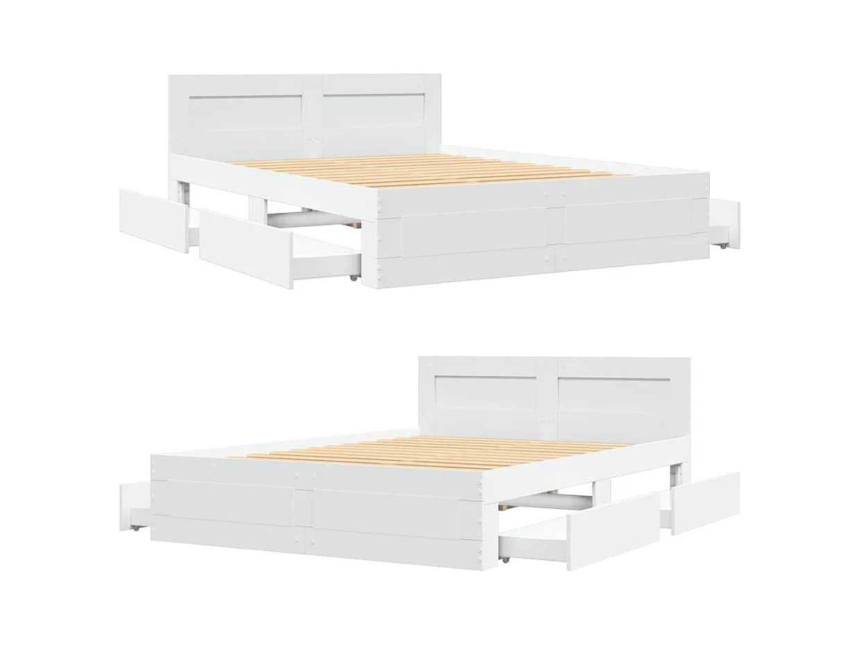 Lit simple | Lit adulte, enfant | Cadre de lit avec tête de lit blanc 120x190 cm