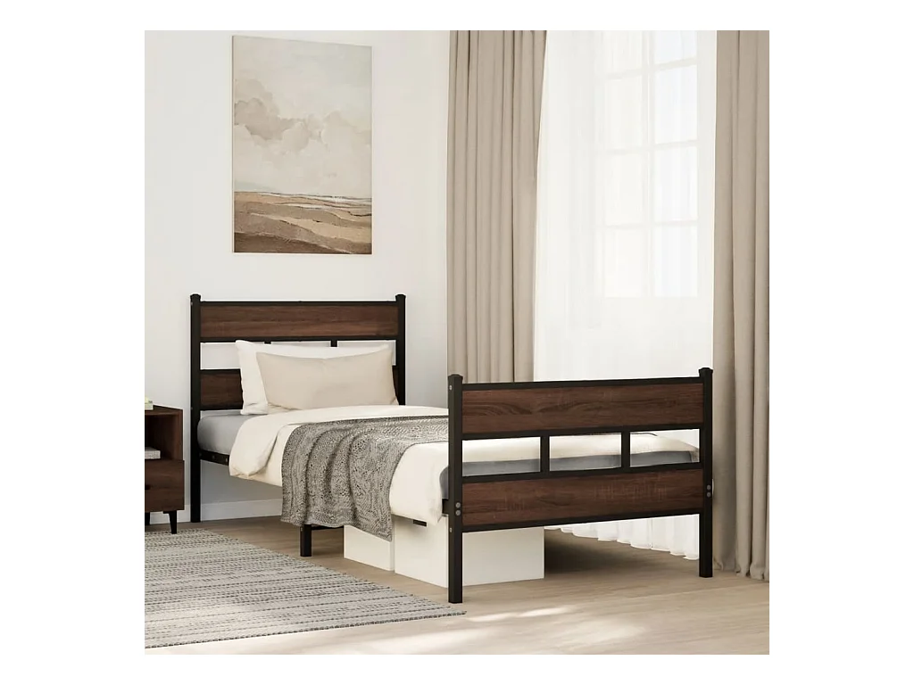 Cadre de lit en métal sans matelas chêne marron 90x190 cm