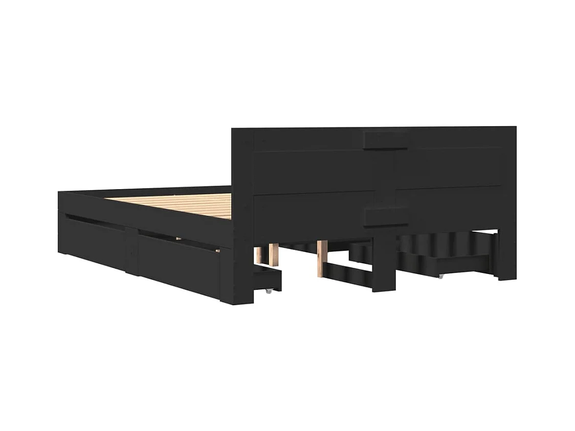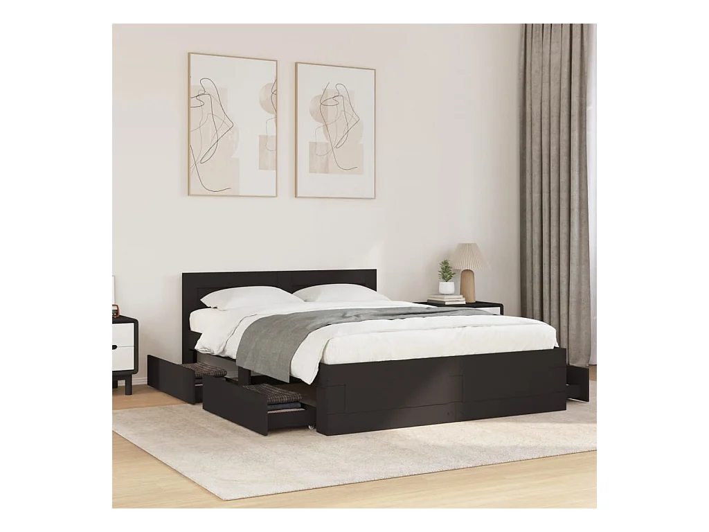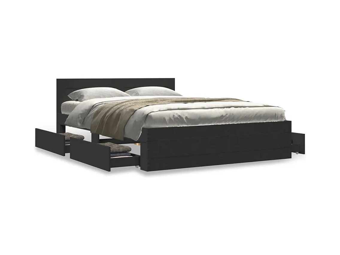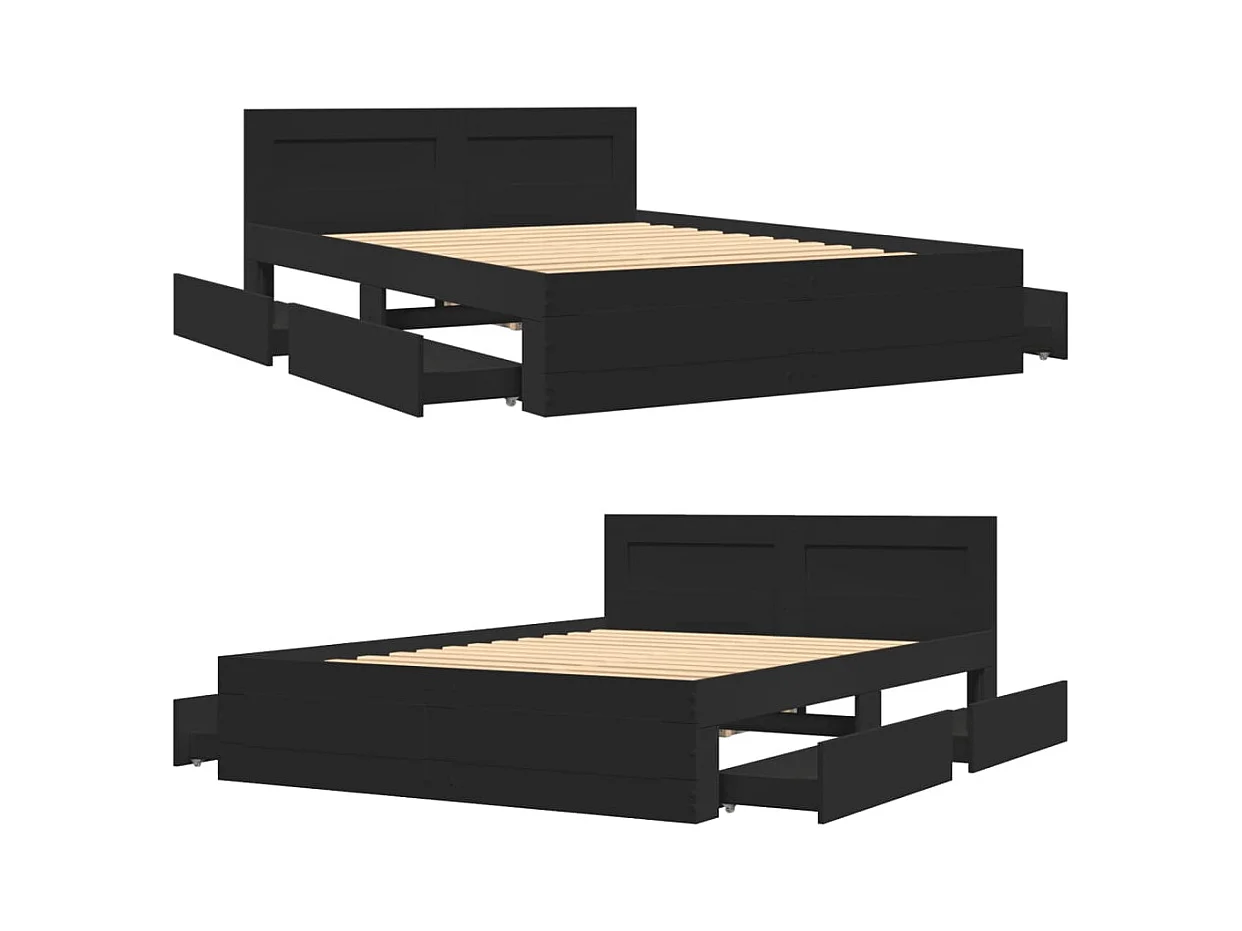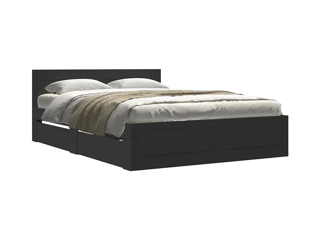 Lit simple | Lit adulte, enfant | Cadre de lit avec tête de lit noir 120x190 cm