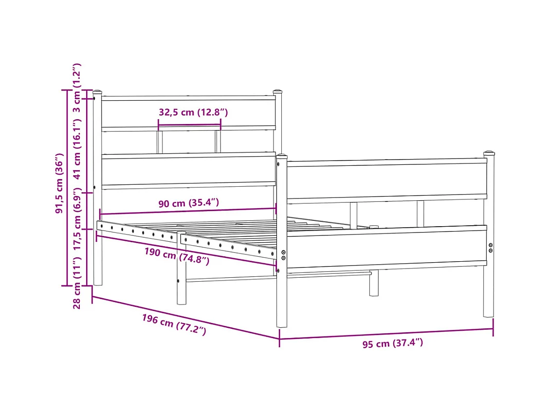 Cadre de lit en métal sans matelas chêne fumé 90x190 cm