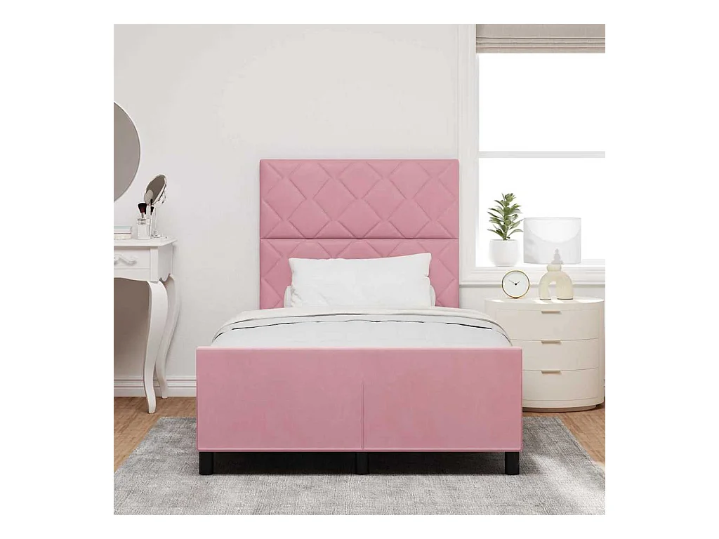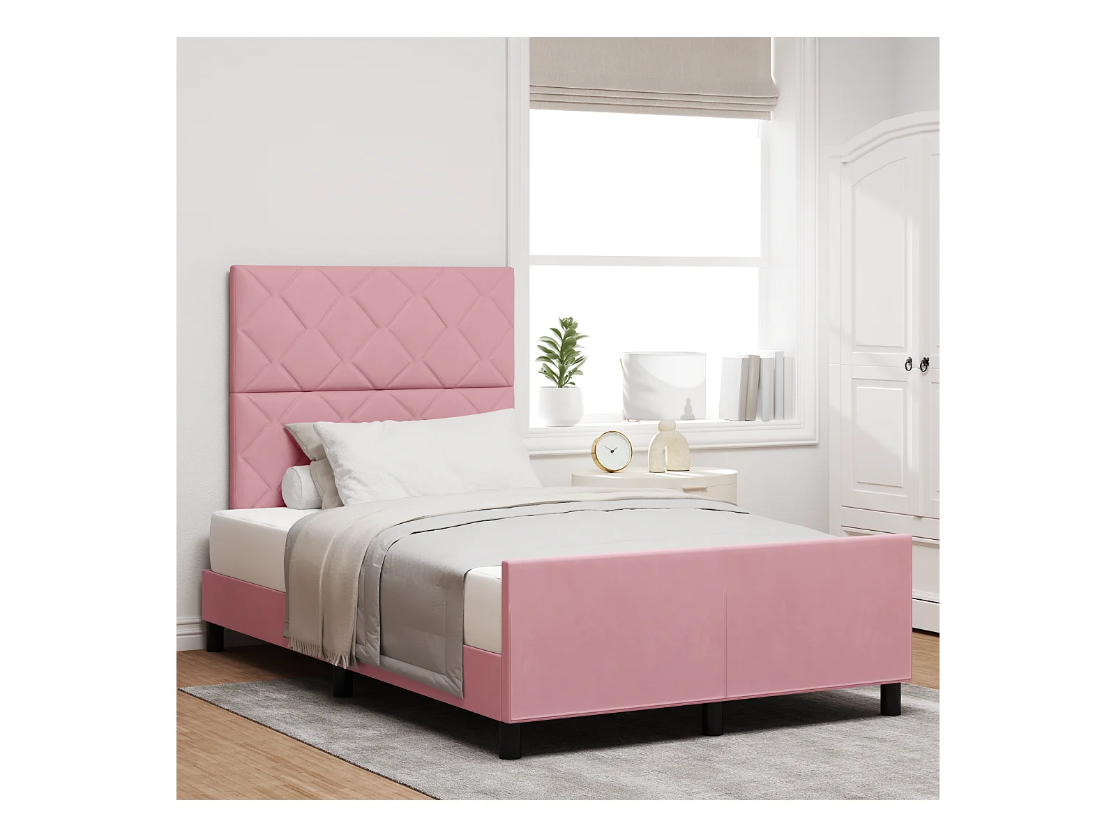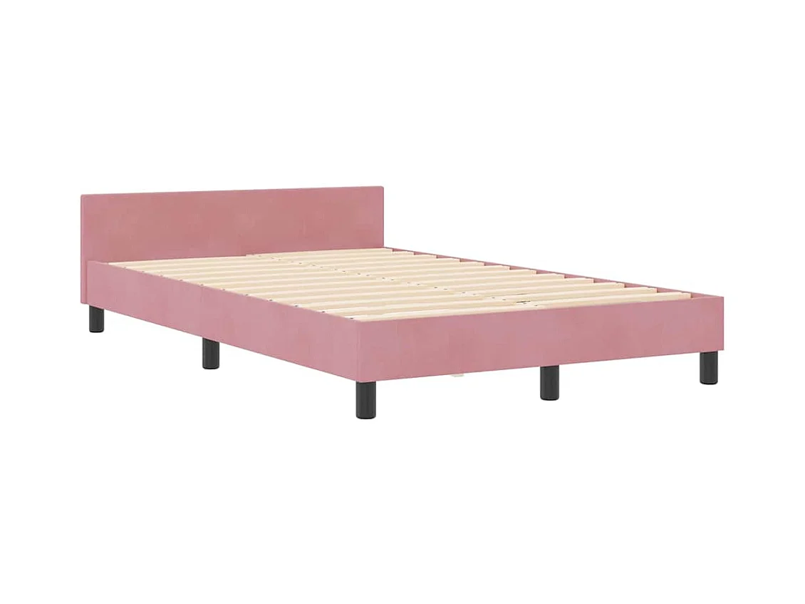 Lit simple | Lit adulte, enfant | Cadre de lit avec tête de lit Rose 120x200 cm Velours