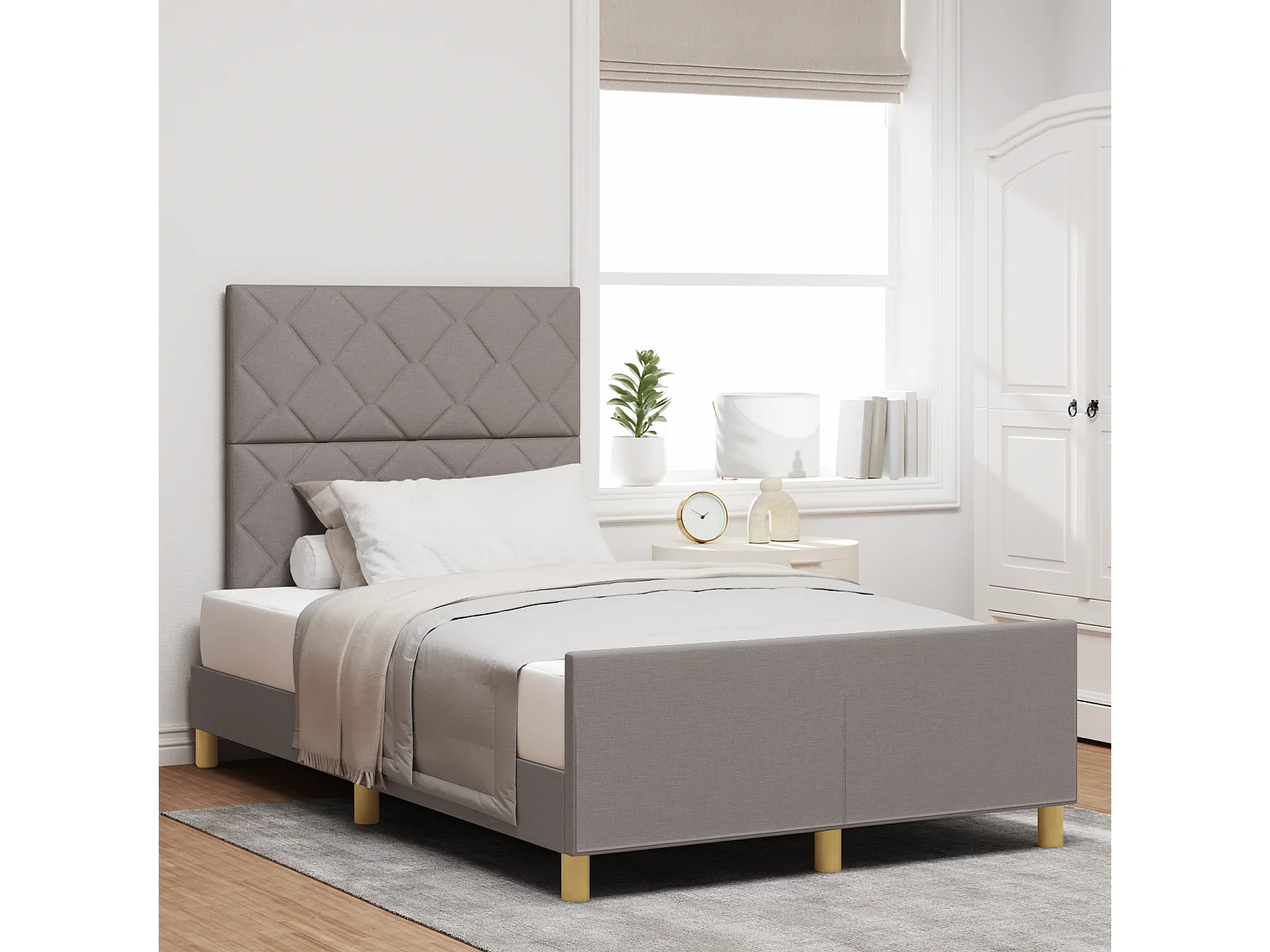 Lit simple | Lit adulte, enfant | Cadre de lit avec tête de lit Taupe 120x200 cm tissu