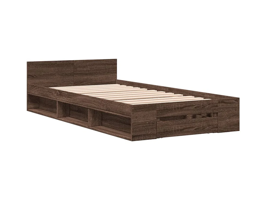 Lit simple | Lit adulte, enfant | Cadre de lit avec tiroir chêne marron 90x200 cm