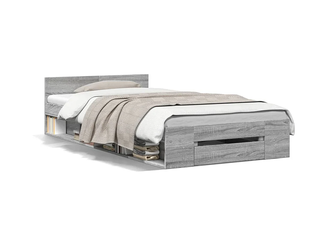 Lit simple | Lit adulte, enfant | Cadre de lit avec tiroir sonoma gris 75x190 cm