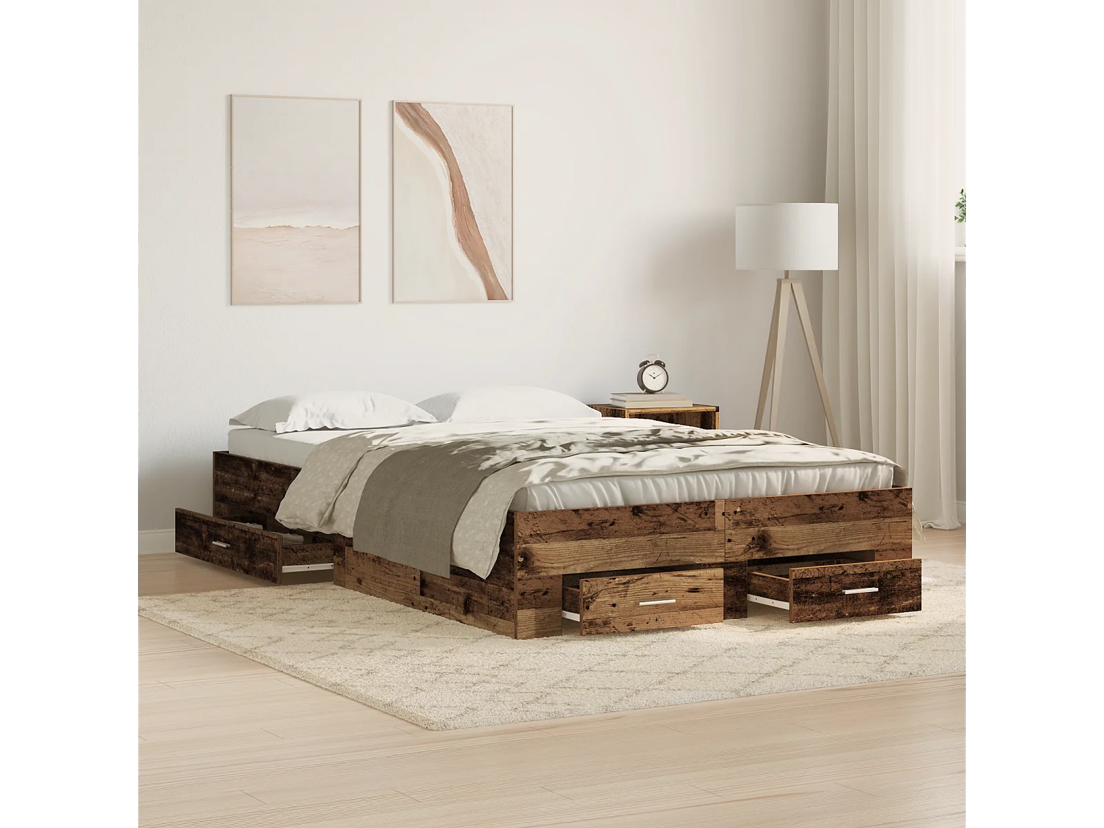 Lit simple | Lit adulte, enfant | Cadre de lit avec tiroirs avec tiroir Bois ancien 120x200 cm