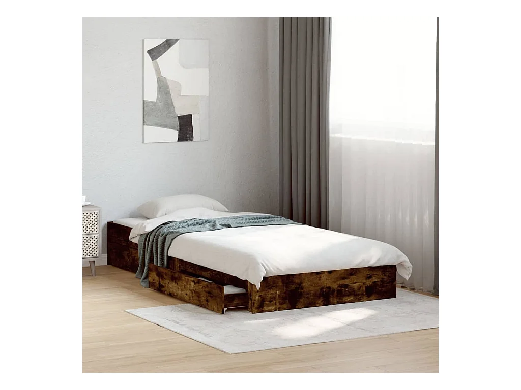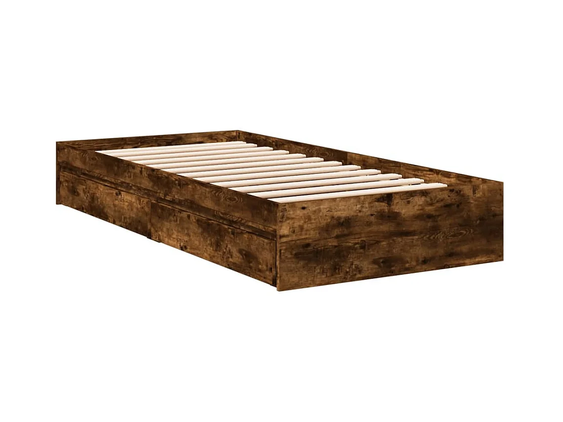 Lit simple | Lit adulte, enfant | Cadre de lit avec tiroirs chêne fumé 75x190 cm