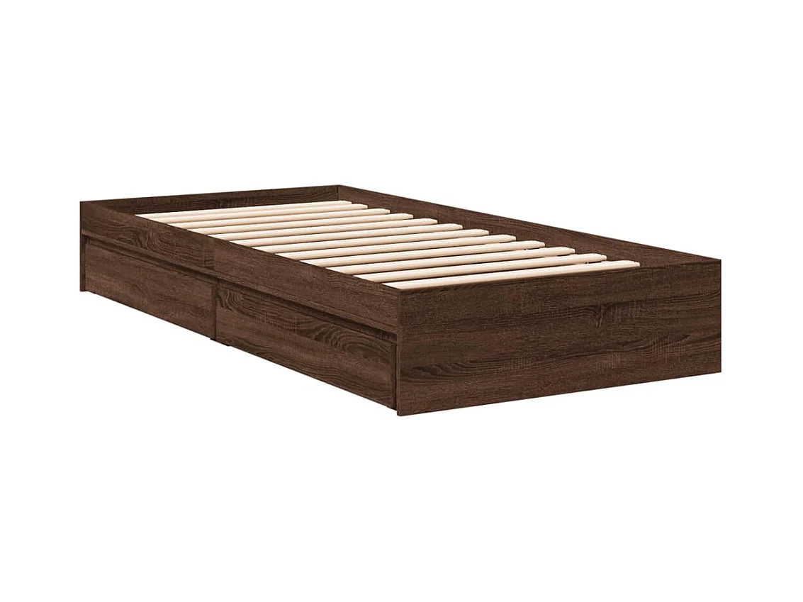 Lit simple | Lit adulte, enfant | Cadre de lit avec tiroirs chêne marron 90x190 cm