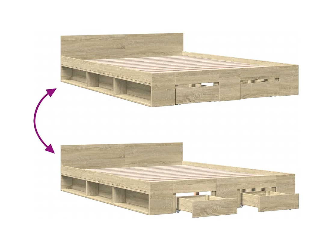 Lit simple | Lit adulte, enfant | Cadre de lit avec tiroirs chêne sonoma 120x190 cm