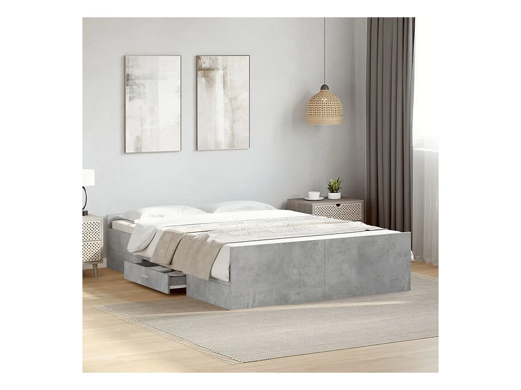 Lit simple | Lit adulte, enfant | Cadre de lit avec tiroirs gris béton 120x200 cm