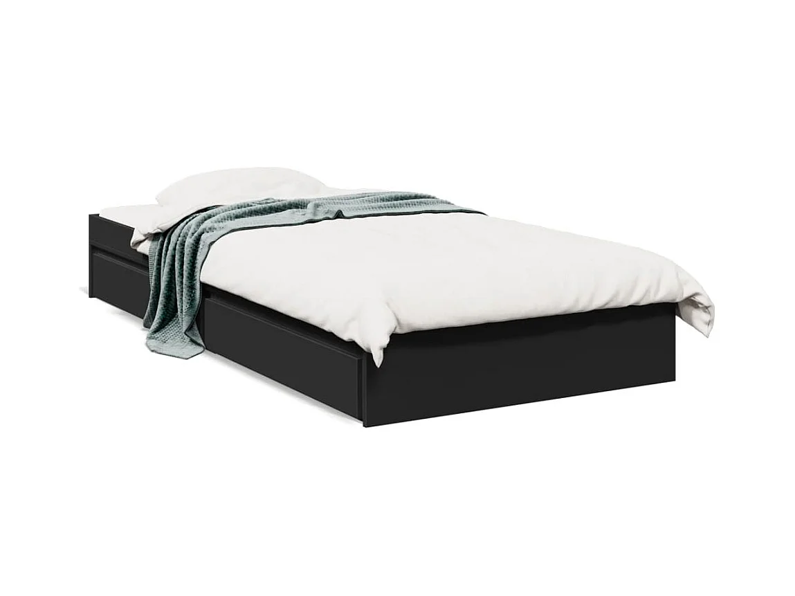 Lit simple | Lit adulte, enfant | Cadre de lit avec tiroirs noir 100x200 cm
