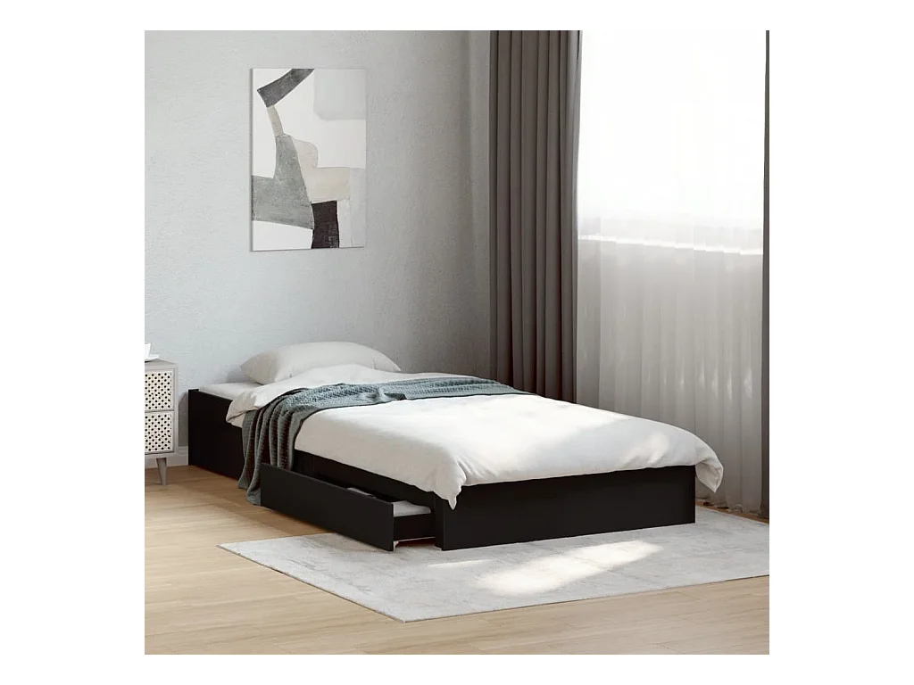 Lit simple | Lit adulte, enfant | Cadre de lit avec tiroirs noir 75x190 cm