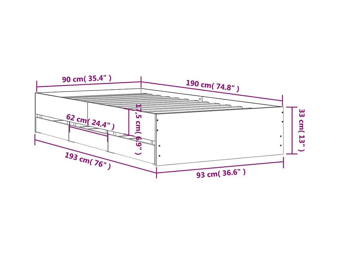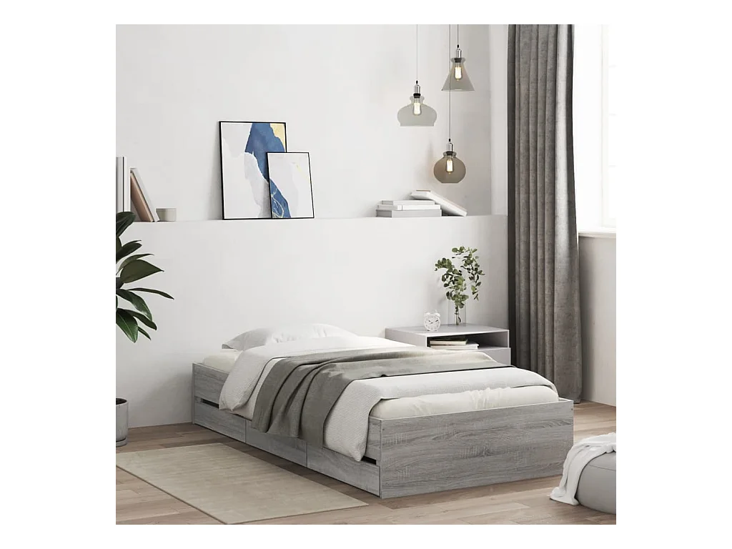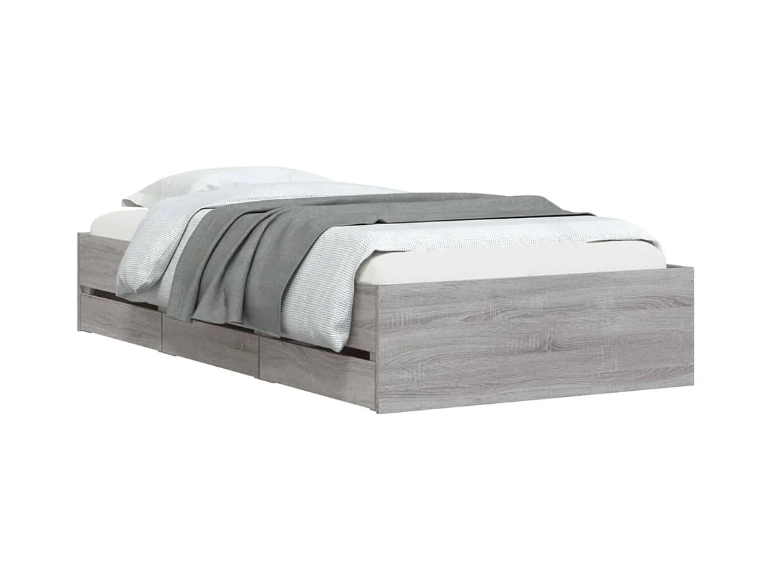 Lit simple | Lit adulte, enfant | Cadre de lit avec tiroirs sonoma gris 90x190 cm