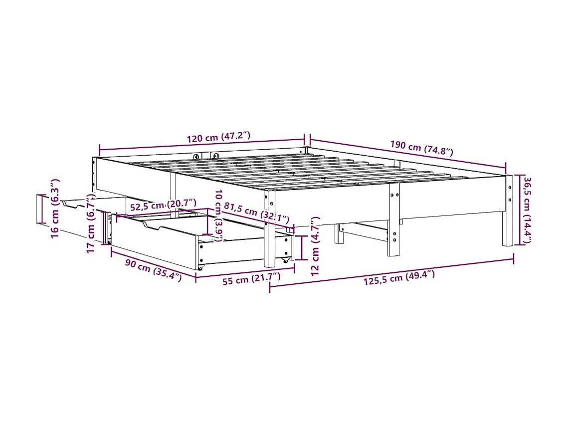 Lit simple | Lit adulte, enfant | Cadre de lit blanc 120x190 cm bois de pin massif