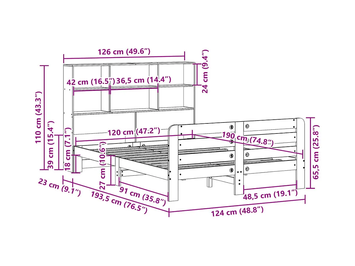 Lit simple | Lit adulte, enfant | Cadre de lit blanc 120x190 cm bois de pin massif