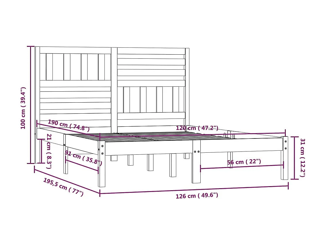 Lit simple | Lit adulte, enfant | Cadre de lit blanc 120x190 cm bois de pin massif