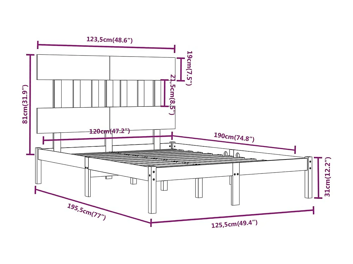 Lit simple | Lit adulte, enfant | Cadre de lit blanc 120x190 cm bois massif