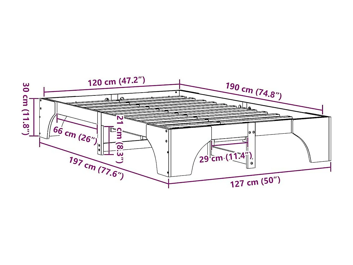 Lit simple | Lit adulte, enfant | Cadre de lit Blanc 120x190 cm en pin massif