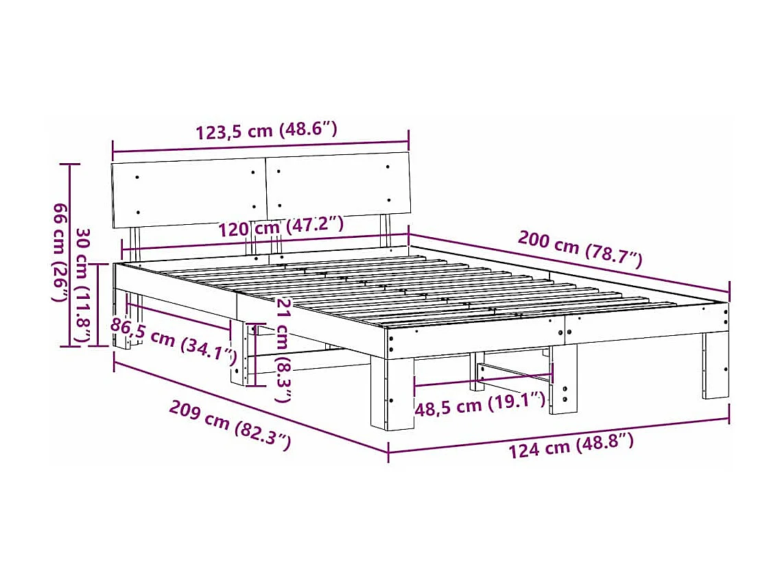 Lit simple | Lit adulte, enfant | Cadre de lit Blanc 120x200 cm Bois de pin massif