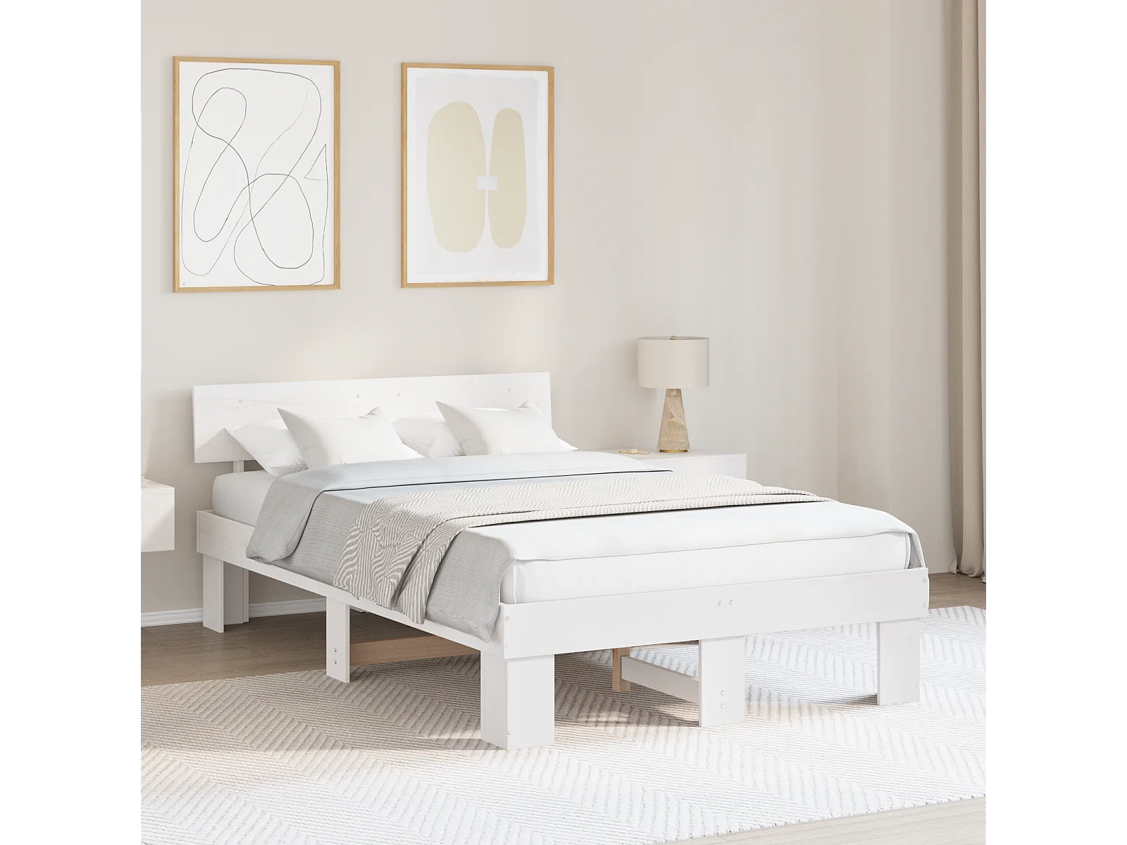 Lit simple | Lit adulte, enfant | Cadre de lit Blanc 120x200 cm Bois massif en pin