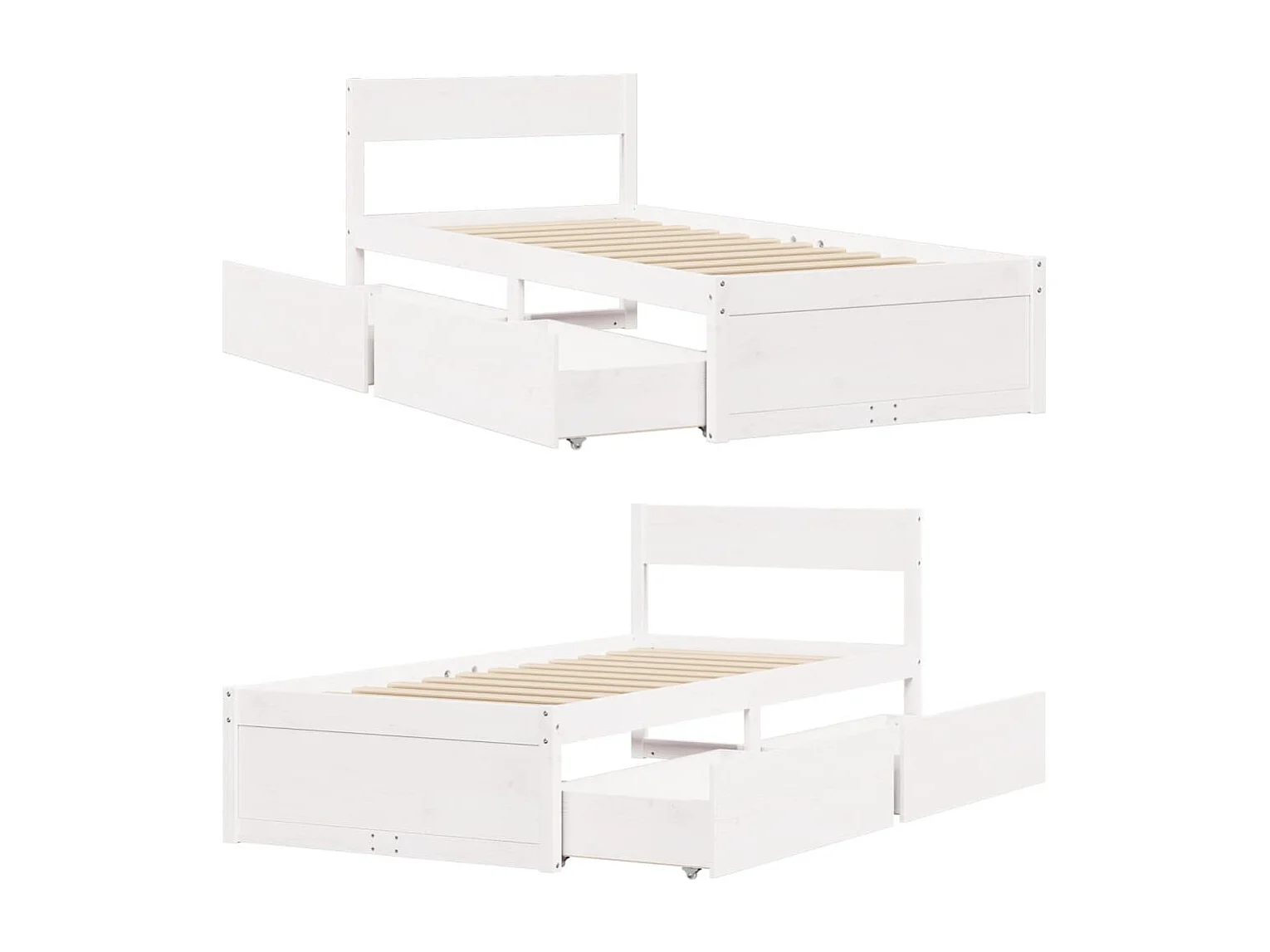 Lit simple | Lit adulte, enfant | Cadre de lit blanc 75x190 cm bois de pin massif
