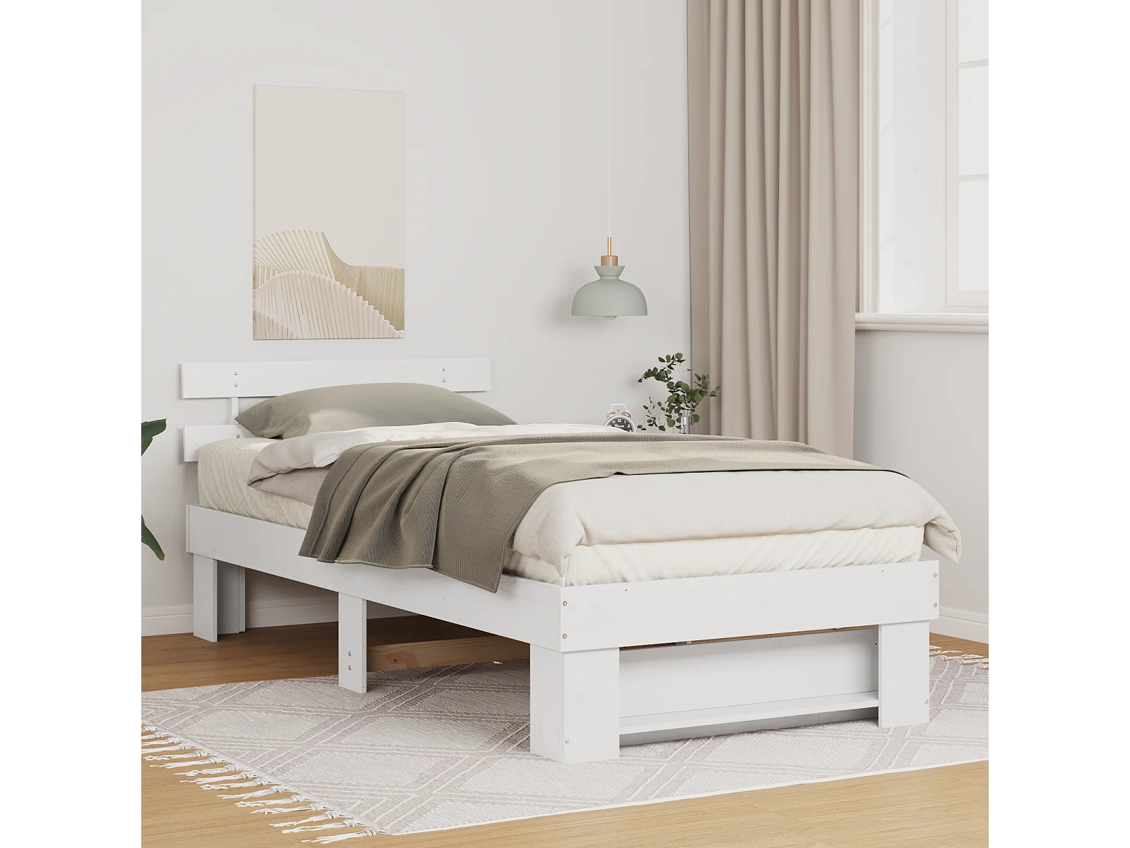 Lit simple | Lit adulte, enfant | Cadre de lit blanc 80x200 cm bois massif de pin